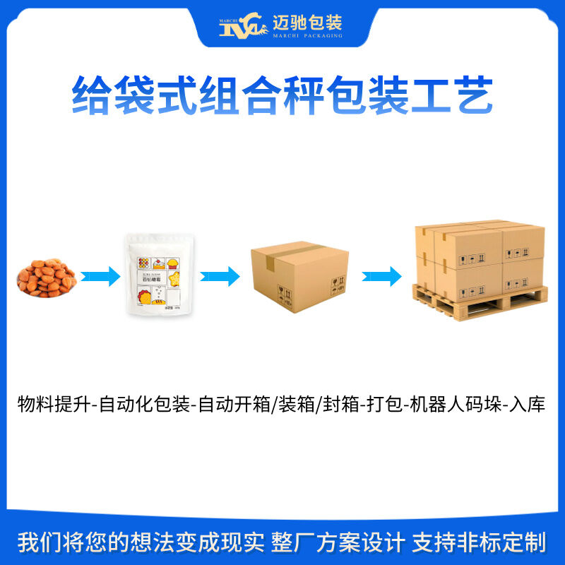 迈驰,是一家专业生产全自动给袋式组合秤包装流水线的生产厂家,无扬尘、高精度,可根据物料不同特性定制包装流水线设备,一对一定制化服务,26年包装行业经验助力生产企业将本增效,提高产能。